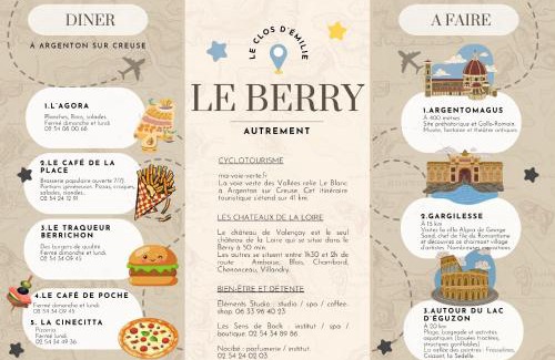 Providing a garden, Le Clos d Emilie provides accommodations in Saint-Marcel. The air-conditioned accommodation is 23 miles from Val de l'Indre Golf Course. There's a barbecue and guests have access to free Wifi, free private parking, and an electric vehicle charging station. Offering a terrace with garden views, this vacation home also has a flat-screen TV, a well-equipped kitchenette with an oven, a microwave, and a toaster, as well as 1 bathroom with a shower and a hair dryer. For added privacy, the accommodation has a private entrance and soundproofing. Continental and vegetarian breakfast options with fresh pastries, pancakes, and fruit are available. There is an on-site snack bar. For guests with children, the vacation home offers outdoor play equipment and a baby safety gate. Chateauroux Shooting Center is 23 miles from Le Clos d Emilie, while Dryades Golf is 31 miles away.