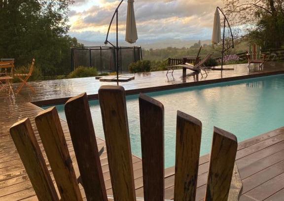 Food & DrinkTea/Coffee makerBathroomShower, Hairdryer, Free toiletries, Toilet, Private Bathroom, Shared toilet, Bathtub or shower, Towels/Sheets (extra fee), Towels, Toilet paperMedia & TechnologyTV, DVD player, Satellite channels, Flat-screen TV, Streaming service (like Netflix)GeneralIron, Ironing facilities, Heating, Private entrance, Soundproof, Hardwood or parquet floorsKitchenRefrigerator, Kitchen, Electric kettle, Kitchenware, Dryer, Oven, Stovetop, Coffee machine, Dining tableLiving AreaDesk, Fireplace, Dining areaViewView, Garden view, Pool view, Mountain view, Inner courtyard viewServicesExecutive lounge accessOutdoorsPrivate pool, Barbecue, Terrace, Outdoor furniture, Outdoor dining areaBedroomWardrobe or closet, LinensAccessibilityUpper floors accessible by stairs onlyRoom AmenitiesClothes rack, Socket near the bedEntertainment & Family ServicesBoard games/puzzles, Books, DVDs or music for childrenCleanliness & disinfectionHand sanitizer |