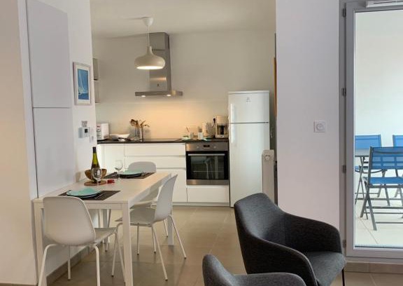LE CLOS SAINTE MARIE offers accommodations in Pornic, a 8-minute walk from Sablons and 1.6 miles from Pornic Castle. This beachfront property offers access to a terrace, free private parking, and free Wifi. The accommodation features an elevator and free shuttle service for guests. The apartment consists of 1 bedroom, a living room, a fully equipped kitchen with a dishwasher and a coffee machine, and 1 bathroom with a walk-in shower and a hair dryer. Towels and bed linen are available in the apartment. The property has an outdoor dining area. Noëveillard Harbor is a 19-minute walk from the apartment, while Pornic Train Station is 2.9 miles from the property. Montoir Airport is 15 miles away.