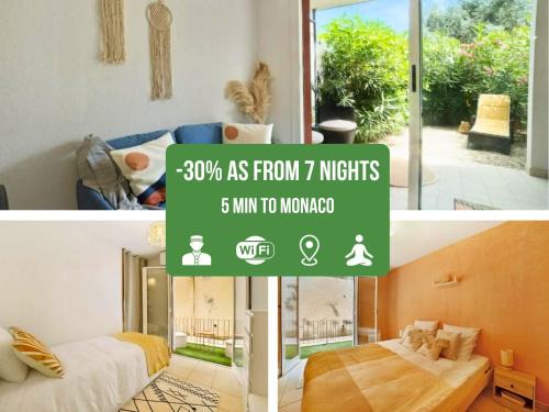 Le Cocon - 5 min to Monaco - Ideal couple or business - Near events - Terrace and balcony - Premium services - Extra parking is located in Fontvieille, just one mile from Marquet and 2 miles from Grimaldi Forum Monaco. Free Wifi is featured throughout the property and private parking is available on site. Staff on site can arrange a shuttle service. The air-conditioned apartment consists of 2 bedrooms, a living room, a fully equipped kitchen with a dishwasher and a coffee machine, and 1 bathroom with a bath and a hair dryer. Towels and bed linen are provided in the apartment. The property has an outdoor dining area. There is an on-site coffee shop. Guests can also relax in the garden or on the sun terrace. Chapiteau of Monaco is one mile from the apartment, while Cimiez Monastery is 10 miles from the property. Monaco Heliport Airport is 2.5 miles away, and the property offers a paid airport shuttle service.