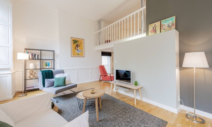 Located on the 3ᵉ floor without a lift (with very wide, low stairs and easy access) and with a surface area of 50 m², it can accommodate up to 5 travellers. It consists of an office area, a large living room with dining area, a fitted kitchen, a bathroom and two bedroom areas on the mezzanine. 4* hotel-quality linen at your disposal, with beds made up on arrival. We're waiting for you!