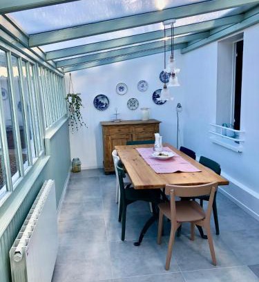 A recently renovated vacation home, Le Gîte de la Tannerye offers accommodations in Le Tilleul. With garden views, this accommodation provides a terrace. Eglise St. Joseph is 15 miles from the vacation home and Saint Michel's Church is 16 miles away. With free Wifi, this 2-bedroom vacation home features a flat-screen TV, a washing machine, and a fully equipped kitchen with a dishwasher and oven. Towels and bed linen are available in the vacation home. The property has an outdoor dining area. A mini-market is available at the vacation home. For guests with children, the vacation home offers a baby safety gate. A bicycle rental service is available at Le Gîte de la Tannerye, while cycling can be enjoyed nearby. Tilleul Beach is 1.4 miles from the accommodation, while Etretat's Cliff is 2.3 miles from the property. Deauville - Normandie Airport is 35 miles away.