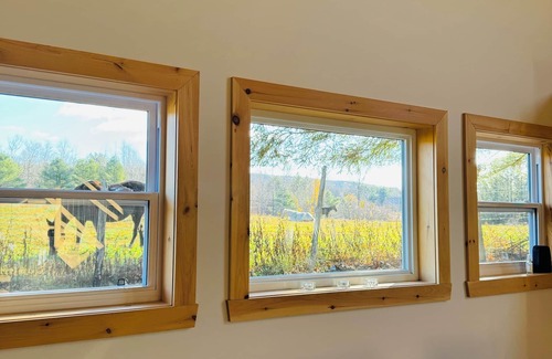 Located in Frelighsburg, this 2-bedroom, 1-bathroom vacation home lets you experience it all. Fans of nature and the outdoors will love being 2 minutes by car from Parc Goodhue and 2 minutes from Halte Jeanne-Demers. You'll easily make the quick 4-minute drive to Clos Saragnat Winery or the 2-minute drive to Parc Dwyer.