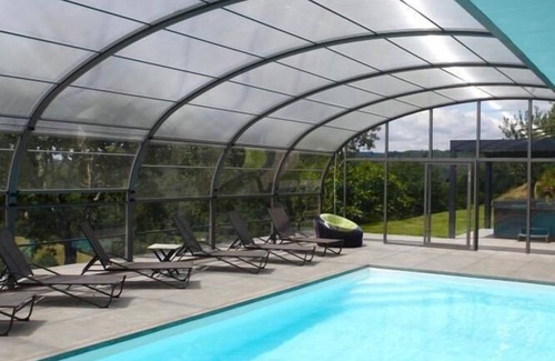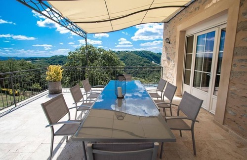 10 km from Figeac, the Ferme du Cayla is undeniably a unique place in the Lot thanks to the services available to you: covered and heated swimming pool, outdoor swimming pool, spa, sauna, hammam, wellness area, creche, playground , the mini-farm, the fishing pond, the restaurant...and 6 accommodations presenting all the standards of modern comfort on a property of 4 ha! The Grand Charme cottage is a beautiful residence is ideal for a large family or a group of friends, up to 10 people. Here, we like this idea of a small village privatized just for you and which will delight children who can enjoy it in peace! and we love all the services offered such as the breakfasts served every day included in the price! Staying at the Ferme du Cayla is the guarantee of an entertaining holiday for the children and relaxing for the parents...an unforgettable family experience in a very pleasant natural environment!On the ground floor, fully equipped kitchen, dining room, dining room with its cantou (large typical open fireplace), a living room / library, children's playroom (90 bed and cot if necessary), the master bedroom with 1 180 bed, bathroom with shower and WC. Upstairs, a children's bedroom with 2 90 cm beds (and a cot). A bathroom with bath and WC. Still on the same floor, a 1st master suite overlooking the surrounding countryside, with 180 bed, dressing room, shower room, WC. And finally, a second master suite upstairs with dressing room, 180 bed, bathroom with separate toilet and jacuzzi bath. Laundry room (with washing machine) in the basement. Private garage for 2 cars, 40 m2 terrace overlooking the Célé valley. La Ferme du Cayla is a fully enclosed village also including the following accommodations: Lilas (46G12715, 5 people), Dhalia (46G12716, 4 people), Rose (46G1271, 6 people), Laurier (46G12714, 6 people) and Acacia (46G12712 , 6 people).