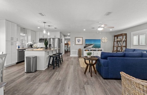 This bright and airy home features two spacious living rooms and an open layout, ensuring that there’s plenty of space for everyone to unwind and make lasting memories. The Blue Tide Hideaway offers: