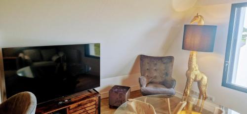 LE LOFT offers accommodations in Séné, 5.1 miles from Vannes Marina and 5.3 miles from Le Chorus Exhibition Center. This beachfront property offers access to free Wifi and free private parking. The apartment offers a picnic area and a 24-hour front desk. The air-conditioned apartment consists of 1 bedroom, a living room, a fully equipped kitchen with a dishwasher and a coffee machine, and 1 bathroom with a walk-in shower and slippers. A private entrance leads guests into the apartment, where they can enjoy some wine or champagne and chocolates or cookies. The apartment offers bed linen, towels, and laundry service. Guests can make the most of the warm weather with the property's barbecue facilities. The area is popular for hiking and walking tours, and free use of bicycles is available at the apartment. Guests at LE LOFT can enjoy bike tours nearby, or make the most of the garden. Museum Of Fine Arts, Vannes La Cohue is 5.5 miles from the accommodation, while Vannes Train Station is 6.7 miles from the property. Lorient South Brittany Airport is 45 miles away.
