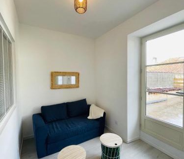 Le Lussaut offers air-conditioned rooms in Saint-Jean-dʼAngély. Both free Wifi and parking on-site are available at the apartment free of charge. Outdoor seating is also available at Le Lussaut. All units include a seating area, a flat-screen TV, a fully equipped kitchen, a dining area, and a private bathroom, while some feature a terrace or a balcony. An oven, a microwave, and fridge are also featured, as well as a coffee machine and a kettle. The rooms are equipped with heating facilities. Saintes Train Station is 16 miles from the accommodation, while Abbaye aux Dames is 16 miles away. La Rochelle - Île de Ré Airport is 45 miles from the property.