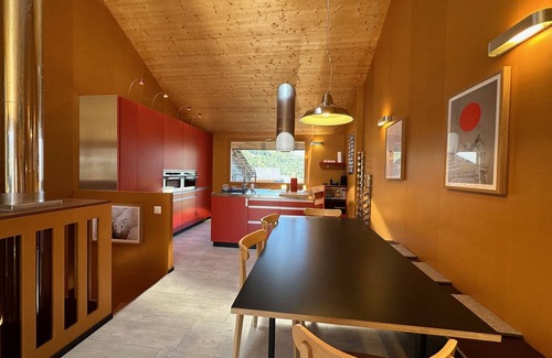 The last level then offers you a magnificent living room with fully equipped and fitted kitchen open to the living room with Apple TV and giving direct access to a unique south-facing terrace with absolute mountain views.