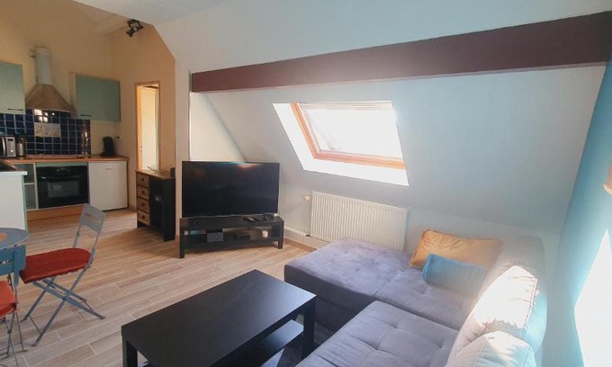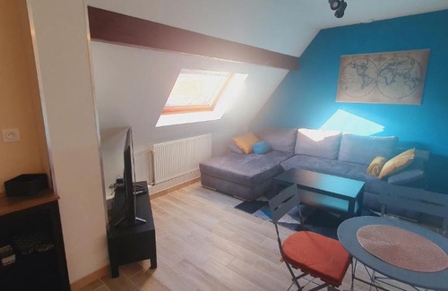 Offering free WiFi and city views, le ptit appart en couleurs is an accommodation situated in Delle. The apartment has 2 bedrooms, a flat-screen TV and a fully equipped kitchen that provides guests with a microwave and a fridge. Towels and bed linen are offered in the apartment. Belfort Train Station is 23 km from the apartment. The nearest airport is EuroAirport Basel–Mulhouse–Freiburg Airport, 47 km from le ptit appart en couleurs.