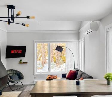 Le Refuge Du Mont near MSA with Water Park and Golf is located in Beaupré, just 3.8 miles from Sainte Anne de Beaupre Basilica and 25 miles from Old Quebec/Vieux Quebec. Guests can go for a swim in the private pool. There's a terrace and guests have access to free Wifi, free private parking, and an electric vehicle charging station. The air-conditioned apartment consists of 1 bedroom, a living room, a fully equipped kitchen with a dishwasher and a coffee machine, and 1 bathroom with a shower and a hair dryer. Towels and bed linen are featured in the apartment. The accommodation has a fireplace. Skiing and hiking are possible within the area, and the apartment offers ski storage space. Basilique Cathedrale Notre Dame de Quebec is 25 miles from Le Refuge Du Mont near MSA with Water Park and Golf, while Fairmont Le Chateau Frontenac is 25 miles away. Québec City Jean Lesage International Airport is 32 miles from the property.