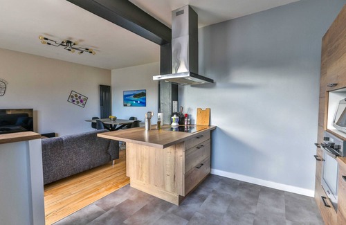 - Frigo, lave vaisselle, four, micro onde, plaques induction, machine à café (Tassimo), bouilloire, grille pain, machine à bière, nécessaire de cuisine
