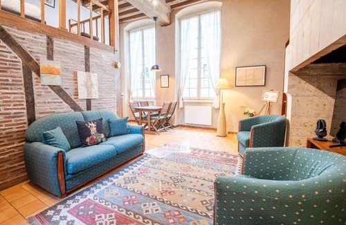 Pierres, belle hauteur sous plafond et poutres apparentes sont au rendez-vous pour une expérience authentique au cœur du Vieux Tours.