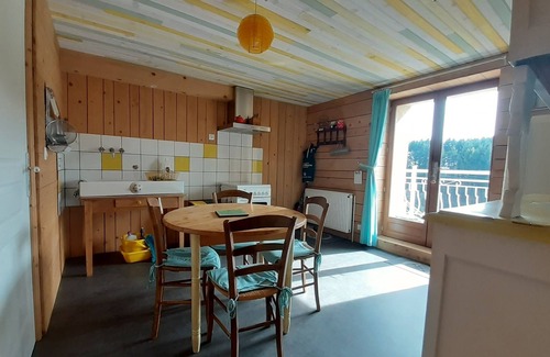 The two buildings are "connected" by a large panoramic terrace offering a magnificent view of the Auvergne volcanoes, and independent access for guests. No vis-à-vis from the rooms, just the view of the valley ...