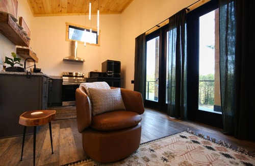 Open May 2023, five modern mountain chalets tucked into a hillside with wooded views from walls of windows in the vaulted living and sleeping areas. Sleek efficient design and indulgently luxe finishes reminiscent of your favorite vacation posts, make Legends Lane the latest and greatest place to shack up in the Hocking Hills. With a seasonal gas fireplace, fire ring, hot tub, and shower built-for-two, you may never want to leave. SaunaPods and the Chalets seasonal resort pool are located on the same campus, which is a couple miles up the road from the epicenter of the region's natural amenities: the Hocking Hills State Park Visitors Center. Queen bed. One bath. High-speed internet. Pet friendly (Limit 2, $50+tax pet cleaning fee, no Doberman's, Pitt Bulls, or Rottweilers.).