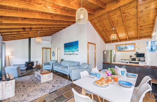 Perched high on a hill and nestled among the trees, this cosy beach house offers a peaceful escape from the hustle and bustle of Perth. With Ocean views from the upper balcony, sea breezes, and sunsets to remember, this charming retreat combines all the comforts of home with the laid-back charm of coastal living.