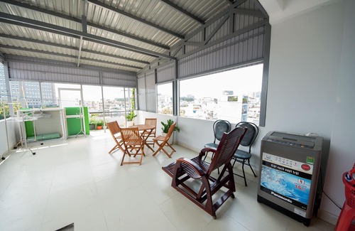 Kitchen space is fully and clean, you can cook all your favorite foods, because there are full of widgets. Washing Machine is in your home, it very private and convenient for your trip. The room has a window, outside is a nice balcony, you can wake up early to breathe fresh air and welcome the morning sunshine of Saigon.