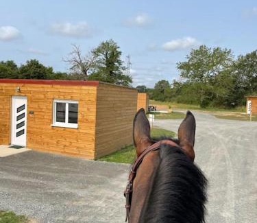 Les Chalets du Mancel: Studio June - 24H du Mans - Bouleries Jump - offers accommodations in Parence, 3.8 miles from Le Mansgolfier Golf Club and 5.7 miles from Le Mans High Court. With free private parking, the property is 8.8 miles from Antarès and 10 miles from Le Mans Circuit. Le Mans Train Station is 6.8 miles from the chalet and Culture and Convention Centre of Le Mans is 7 miles away. The property includes a living room with a flat-screen TV. The accommodation is non-smoking. For those nights when you'd rather not eat out, you can cook in your kitchenette. Guests can relax in the garden at the property. Le Mans Town Hall is 5.8 miles from the chalet, while Louis-Aragon Multimedia Library is 6.3 miles from the property. Tours Loire Valley Airport is 57 miles away.