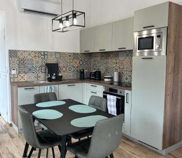 Food & DrinkTea/Coffee maker, Bottle of waterBathroomHairdryer, Body soap, Toilet paper, Toilet, Bathtub or shower, Towels, Shampoo, ShowerMedia & TechnologyTV, Streaming service (like Netflix), Cable channels, Flat-screen TV, Pay-per-view channelsGeneralHeating, Hardwood or parquet floors, Air conditioning, Private entrance, Smoke AlarmKitchenCoffee machine, Microwave, Kitchen, Electric kettle, Kitchenware, High chair, Dining table, Wine glasses, Dishwasher, Stovetop, Oven, Toaster, Washing machineLiving AreaSofa, Dining areaOutdoorsOutdoor furniture, Outdoor dining area, TerraceBedroomLinens, Childrens' cribsAccessibilityEntire unit located on ground floorEntertainment & Family ServicesChild safety socket coversRoom AmenitiesSocket near the bed, Sofa bed |