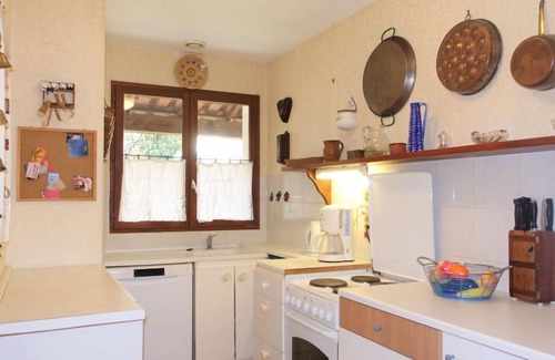 4-room house 90 m2. Lounge 25 m2. Living/dining room 30 m2 with satellite TV. 1 room with 1 french bed (140 cm). 1 room with 2 beds (100 cm). Open kitchen (4 hot plates, oven, dishwasher, microwave, freezer, electric coffee machine). Bath/WC. No heating option. Terrace 10 m2. Terrace furniture, barbecue. Facilities: washing machine. Please note: 1 small pet/ dog allowed. Smoke alarm.