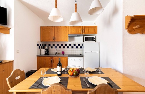 This flat, which can accommodate up to 6 people, has a beautiful living room with a double sofa bed, a fully equipped kitchenette, two bedrooms, a bathroom, a balcony with a view of the summit of the Port du Vénasque as well as ping-pong tables, a basketball court and a petanque court!