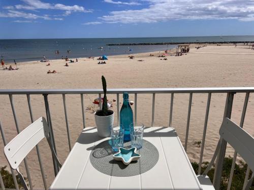 Featuring a private beach area, Les pieds dans l'eau - Carnon plage provides accommodations in Carnon-Plage. This beachfront property offers access to free Wifi and free private parking. The accommodation offers private check-in and check-out and bicycle parking for guests. Providing a terrace with sea views, this apartment also provides guests with a flat-screen TV, a well-equipped kitchen with a dishwasher, a microwave, and a toaster, as well as 1 bathroom. The property has an outdoor dining area. Guests can make the most of the warm weather with the property's barbecue facilities. For guests with children, the apartment features outdoor play equipment. Center Beach is a few steps from Les pieds dans l'eau - Carnon plage, while Parc des Expositions de Montpellier is 3 miles away. Montpellier - Mediterranee Airport is 5 miles from the property.