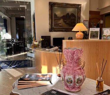 Located in Givet, just 2625 feet from the train station, this hotel offers air-conditioned accommodations. Guests are invited to relax at the on-site bar and the Belgian border is just 1.9 mi away. All of the air-conditioned rooms at Les Reflets Jaunes are nonsmoking and serviced by a elevator. Each room features a desk, a mini-bar and a seating area with a sofa. An private bathroom with free toiletries, a hairdryer and a bath or a shower is also included. A buffet breakfast is served every morning in the communal lounge or directly in your room. It consists of hot and cold drinks, French pastries, pancakes with homemade jam, dairy produce as well as fresh fruit and cooked options. A laundry service is available to guests. A private parking is also possible at a location nearby.