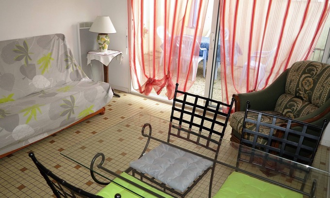 In a seaside fame, overflowing station of many activities we offer: On the ground floor of a detached house in a quiet area (parking provided) an apartment of 45 m2, with separate entrance (2 star furnished accommodation) sunny terrace overlooking a courtyard of 20 m2 where you can dine, sunbathe and there barbecues.