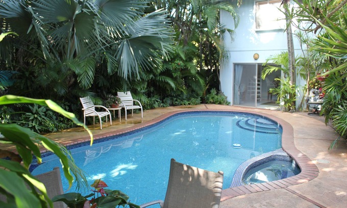 We have an amazing location under a 1 minute walk to Kailua Beach Park! Our villa is tucked away on a private beach lane, offering a beautiful shared pool, hot tub, and lush Hawaiian gardens. Inside, you'll find air conditioning in every room and free WiFi. For your convenience, we provide a hair dryer, shampoo, conditioner, and body wash. You'll also have shared access to a washer/dryer with laundry supplies, a gas BBQ, bikes, boogie boards, coolers, beach chairs, mats, and towels for outdoor fun. Please note that there is a spiral staircase in the unit. Both bedrooms are upstairs, and you'll need to pass through one bedroom to reach the other. However, each bedroom has its own private bathroom.
