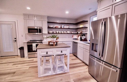 Discover the perfect blend of modern luxury and rustic charm in this stunning Southwest-inspired home. The open concept design creates a spacious and inviting atmosphere, perfect for relaxing and entertaining.Unwind on the luxurious sectional while enjoying the large smart TV, or gather around the fully equipped kitchen to prepare delicious meals with ease. The stylish decor and thoughtful details make this home a true oasis for any traveler seeking comfort and style.