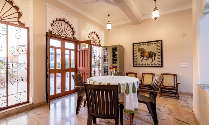 Looking for quick walk in high O2 level, just get soak in Arawali mountain ,look at infinity to gaze stars, sit back and hold best friend ,a noval to give fullest company in silence.Away from honking ,barking A complete royal feel in heritage villa.Aangan is varanda where family gets space to sit together with a space .