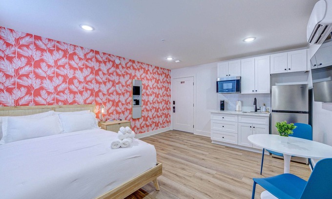 Opening on January 1, 2023, we are conveniently located approximately five blocks from Galveston's famed Seawall. The Botanical gives guests a hotel feel while enjoying the cozy comforts of their own unique short-term living bedroom and full bath. Our building is also located adjacent to the UTMB medical complex and just minutes from the historic Strand district. Be one of our first guests! If your favorite room is already booked, search us and add a different studio apartment # (1-21).