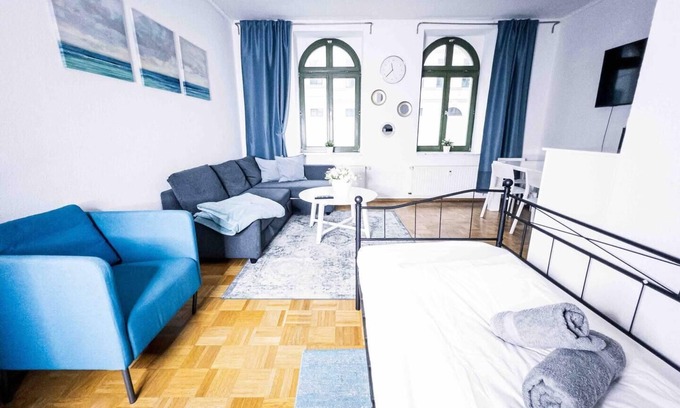 Levax Living - Stadion - Clarapark - 54qm is located in Leipzig, just 1.8 miles from Leipzig Central Station and 2.5 miles from Panometer Leipzig. The property is around 6 miles from Leipzig Trade Fair, 24 miles from Halle Central Station, and 24 miles from Georg-Friedrich-Haendel Hall. Opera Halle is 26 miles from the apartment and Castle Moritzburg is 26 miles away.