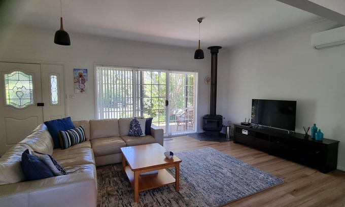 The house is very comfortable, light and bright with an open plan living, leather lounge, air-conditioning, combustion wood fireplace, kitchen and dining which flows to a spacious outdoor entertaining area. There are comfy chairs and table setting, a BBQ ready to use and the space is great for entertaining family and friends. For more chill time check out the many books and games for your enjoyment.