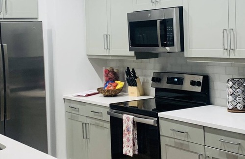 Entire apartment is all yours!! We focus on a very comfortable bed and couch with super soft towels; while making the space be pleasing to the eye. Cleanliness is our TOP priority as we want you to be as comfortable and relaxed as possible! Do you enjoy cooking? This kitchen is begging for a chef. Lots of counter top space and all the must haves to prepare a meal. Brand new apartment complex. Very updated with multiple hang out spots other than your uber comfortable apartment.