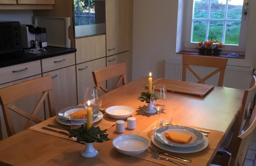 When it gets cold the wood to heat the tile oven is made available. Mild days will invite you to relax outside on your wooden deck or in the large garden, enjoying the fresh air of the Westerwald.