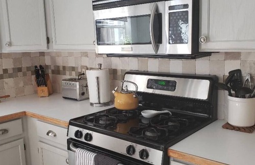 Guests are sure to enjoy a memorable visit in this fully furnished, 3 bedroom/2 bath house. Space is a comfortable 3 Bedroom with queen pillow top mattresses. It can accommodate up to 6 guests. The spacious living room is furnished with leather couches and a 55 inch smart TV access to Hulu and amazon prime. The kitchen is perfect for dining as it is equipped with stove, Microwave and refrigerator - All cooking, dinnerware and cooking utensils provided. There is a deck area to unwind and take in the beautiful nature watch the variety of beautiful birds at play. The property is just minutes away from all of the best attractions, and guests are sure to enjoy having the whole home to themselves. There is a basement apartment that is not included I may use occasionally while I am in town, for one or two days at a time. The garage is not included.