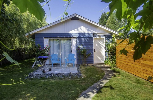 Follow your bliss to this newly renovated modern cottage. Surrounded by grape vines, weeping willows and adorable bunnies. Enjoy a bbq on the outdoor patio in your private greenspace under the fairy lights. Minutes from the ocean, the beaches and the shops of downtown Qualicum Beach. Steps away from beautiful walking trails through the rain forest to Little Q River and the historical abandoned train bridge. This cottage is the ultimate getaway and the perfect combination of luxury and serenity.