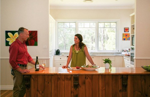 Lillian’s is designed to host 4 guests and has one queen room with en-suite and the other a king that can split to accommodate 2 singles. The main bathroom is charming and features a large, windowed spa bath for you to enjoy a truly serene soak. With fully ducted air conditioning, you and your guests will be comfortable all year round and throughout the winter you can snuggle up by the log fire and enjoy a glass of fine Hunter Valley wine with your Netflix movie of choice or cook up a storm either on the BBQ or in the modern country kitchen with coffee machine and all the convivences you’ll need. Take a spot on the wide verandas for your morning coffee and enjoy the sounds of the birds and the serenity of the property’s 25 acres. Lillian’s is also the perfect spot to escape to work or create and with Wi-Fi available you can connect or unplug as and when you choose. Stay for a weekend or stay for a week, Lillian’s has all you need to rest, play and celebrate and we promise you, you’ll feel like you’ve stepped into the pages of country magazine.
