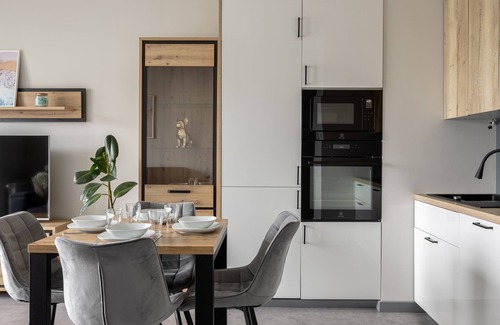 Close to the bay, this welcoming apartment brings it all within reach. Thanks to the convenient covered onsite parking, you can either leave your vehicle behind and let your feet make short work of the 10-minute walk to Polsat Plus Arena, or easily tackle the quick 3-minute drive to AMBEREXPO Exhibition and Convention Centre.