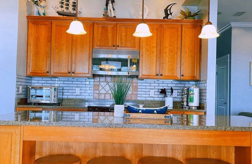 The second master faces the garden (1 king-size bed) with a spacious balcony, a separate bedroom, and a panoramic view of the sea outside! The 3rd bedroom has a separate bedroom (bunk beds are 1 queen and 1 single, separate beds are full size) with its own bathroom! The kitchen features granite counters, new appliances, fully stocked meals, and the bathrooms are immaculate and clean!