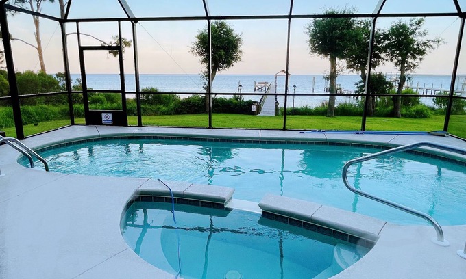 Lily’s Escaped, Private screen cover pool, fishing dock, is located in Carrabelle. Lily’s Escaped, Private screen cover pool, fishing dock, provides accommodation, featuring Parking, Pool, Balcony/Terrace, among other amenities. This House features Parking, Pool, Balcony/Terrace, to make your stay a comfortable one.