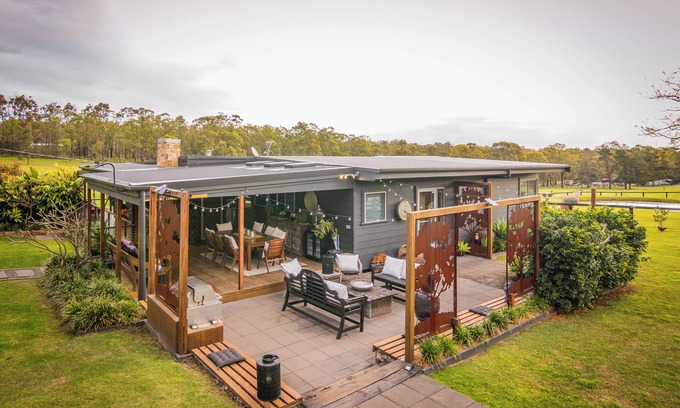 Perfect for extended families, multiple families, friends, or colleagues, the accommodation comprises two queen bedrooms and two king bedrooms. Enjoy the comfort of both indoor and outdoor fireplaces and air conditioning. Lindsay Hideaway is pet friendly. Please help yourself to the fresh eggs laid by our hens for breakfast.