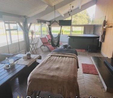 22 miles from Mont de Marsan Train Station in Caupenne, L’Instant features accommodations with access to a hot tub. The air-conditioned accommodation is 18 miles from Dax Train Station, and guests can benefit from on-site private parking and complimentary Wifi. The Tursan Golf Eugenie's Greens is 26 miles away and Mont de Marsan Golf Course is 28 miles from the homestay. Towels and bed linen are offered in the homestay. The accommodation is non-smoking. A continental, full English/Irish, or vegetarian breakfast can be enjoyed at the property. Guests can relax in the garden at the property. Sainte-Marie Cathedral is 18 miles from the homestay, while Gaujacq Castle is 5 miles from the property. Pau Pyrénées Airport is 32 miles away.