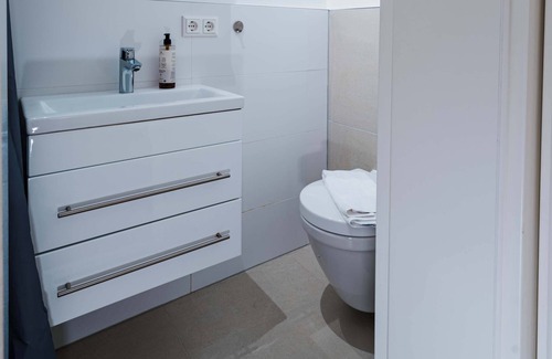 Das Badezimmer ist klein, aber fein, mit einer Regendusche, die für einen angenehmen Start in den Tag sorgt. Frische Handtücher, Duschgel und Shampoo stehen dir selbstverständlich bereit.