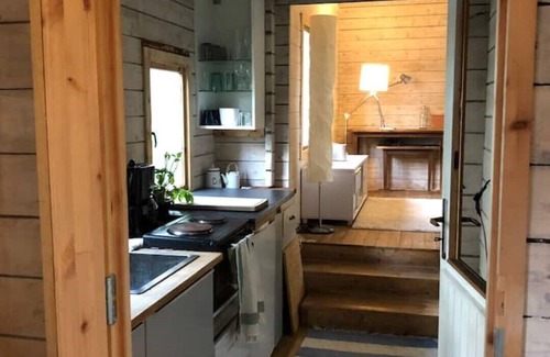 A charming little house on an own peninsula near Stockholm.1 1/2bedrooms,loft,livingroom,kitchenette and showerroom with afreezing toilet. Possibilities to tennis and golf,wonderful outside living .1,7km to the nearest bus,2,4km to the nearest shop, 3.7km to Lidingö center,7min by bus to the subway and 8min by subway to Stockholm center.During the summertime ,possibility to the city by a ferry Ropsten-Mor Annas Brygga, ca 500m away.