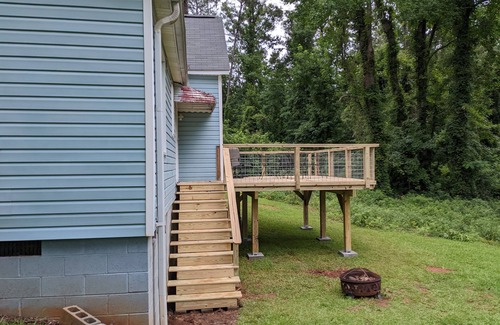 We have added a brand new deck out the back door with table and chairs. It's a perfect place to relax and is very private.