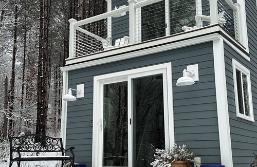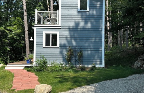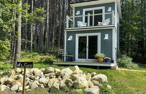 Little Fox Hill is nestled in an enchanting forest right next to the state parks of Bradbury Mountain and Wolf's Neck, surrounded by three organic farms. It is a tiny house custom-built by local craftsmen, furnished with items made by small companies in Europe. In this nature paradise you can either read a book or write a book, be quiet by a little stream and listen, spend time on the rocky coast of Casco Bay, or explore hiking trails, play discgolf on the famous Pineland Farms about 5 minutes away, go shopping at LL Bean's Flagship Store or attend a show at the Chocolate Factory in Bath about 30 min away.
