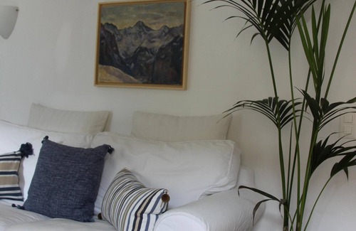 Charming little house on two floors in the picturesque village of Gandria with partial view of the Lake of Lugano. Completely renovated with hand-made terra cotta floors, wood stove, new bathroom and nice kitchen. Fully equipped with dishwasher, washing machine and dryer, telephone, computer with free Internet access, ironing board, bed linen and towels. The name “Casa Parrucchiere” comes from the building’s use as a barbershop 100 years ago (sign still visible on facade). The house was owned by Swiss painter Fritz Meijer), who used it to exhibit his artwork. Outside the entrance is a “pergola” (arbor) and table for two shaded by grapevines.