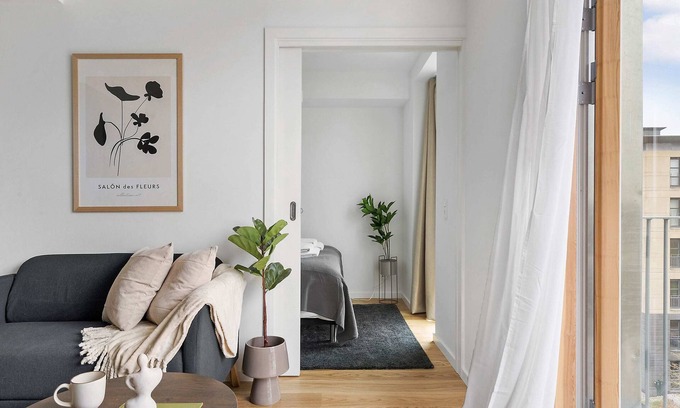 A beautiful and cozy 1-bedroom apartment located in the vibrant and very comfortable building "Trælasten", giving you groceries, coffee shops and the city center only a few minutes walk away. A truly convenient location with high quality amenities and furniture.