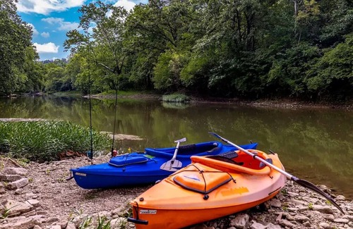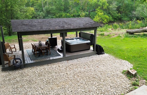 Our beautiful 3 acre property Casa Del Rio Azul is located right on the Little Miami River. Enjoy the large pavilion located directly on the river. You can take a dip in the river and shower before enjoying the hot tub or warm up by the fireplace. Our riverside beach is a great place to hang out to catch some rays or launch a guest provided Canoe or Kayak. If outdoor living is more your style you can enjoy the tree house with all the amenities. Full bed and electricity.
